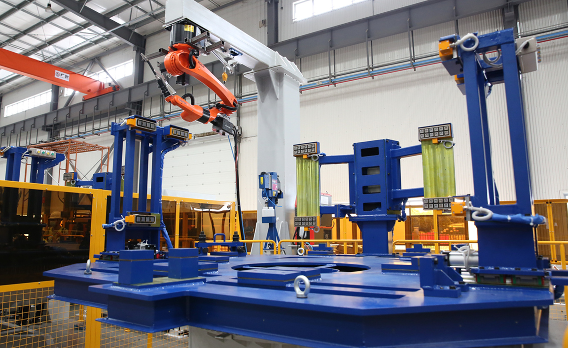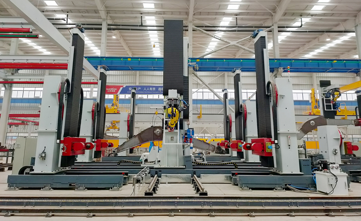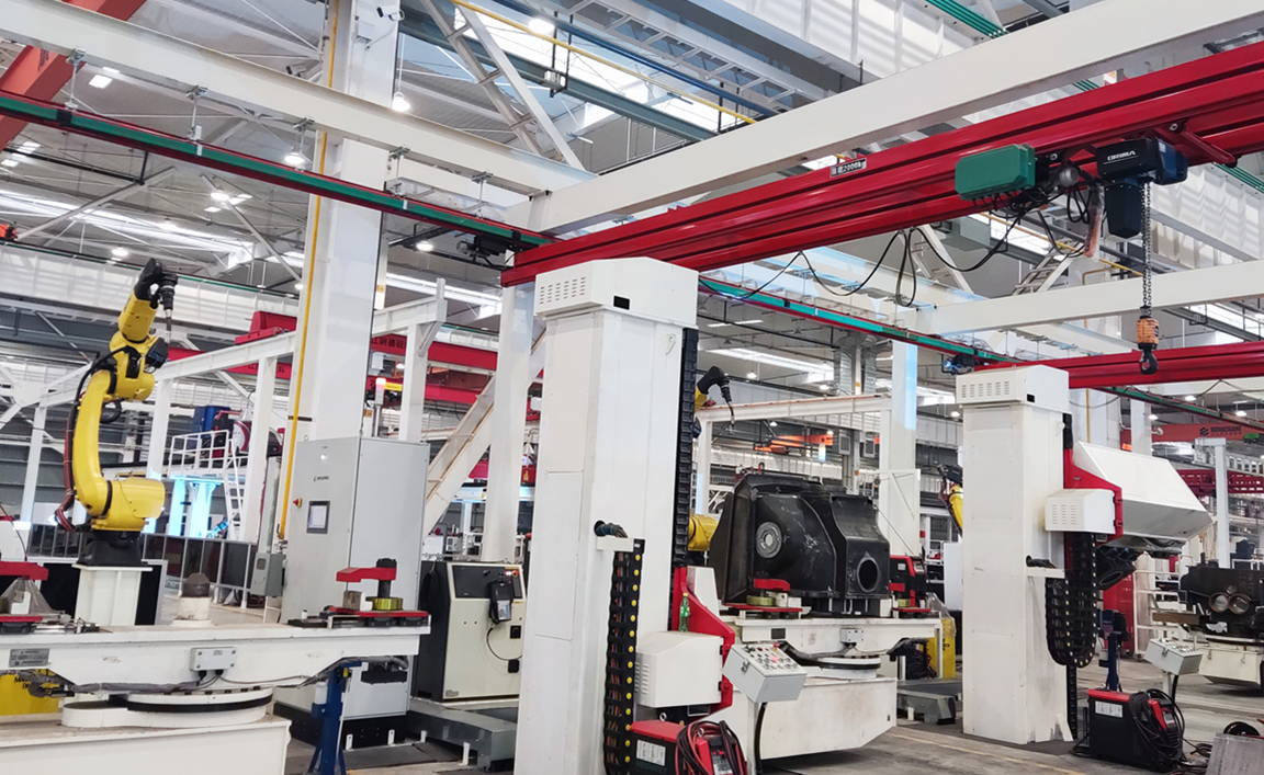 By flexibly integrating the ultra-low spatter welding machine, arc welding workstation, welding tooling, fixtures, conveying lines, etc., the automatic brake shoe welding production line, featuring such advantages as rapidity, flexibility and simple operation, involves self-developed intelligent welding technology, low spatter welding technology and robot motion simulation technology, and includes multiple processes such as welding, cooling, shaping, machining and quenching. It is the first automatic second-level welding production line for automotive brake shoes in China.